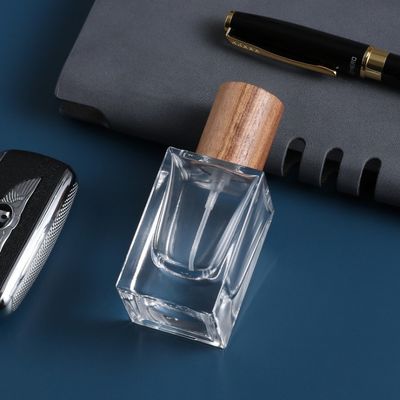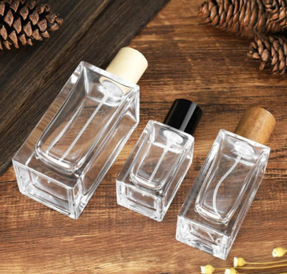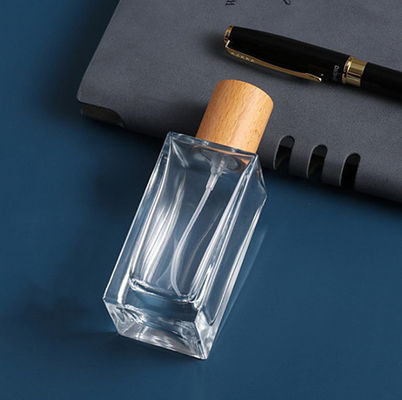 Botella de perfume cosmética de cristal de los envases de la tapa de madera de alta calidad Crystal Glass Bottles
