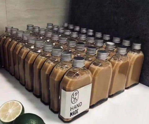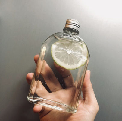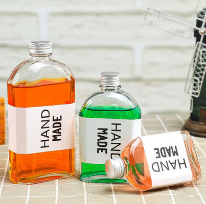 Botella de vidrio transparente plana de Beverag para Juice Wine Glass Storage Bottles