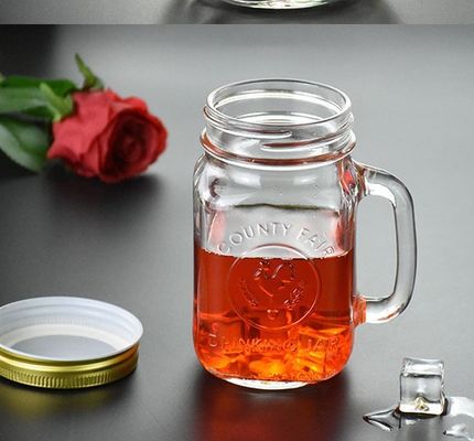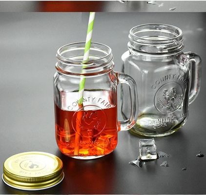 La feria del condado Mason Jar Drinking Glass Storage embotella con las manijas