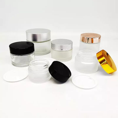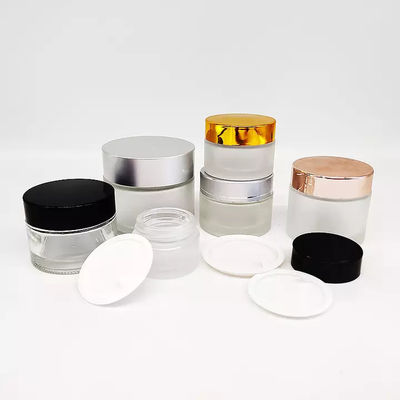 Tarro de cristal cosmético claro al por mayor con los envases cosméticos de cristal de lujo de plata de la tapa 100ml