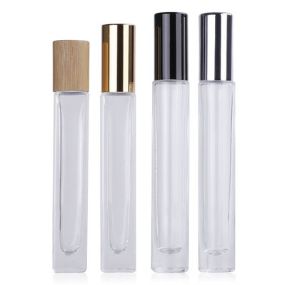 cuadrado alto 10ml alrededor de los envases cosméticos de cristal de la bola de metal del cristal de botellas del rodillo para el aceite esencial