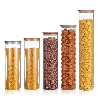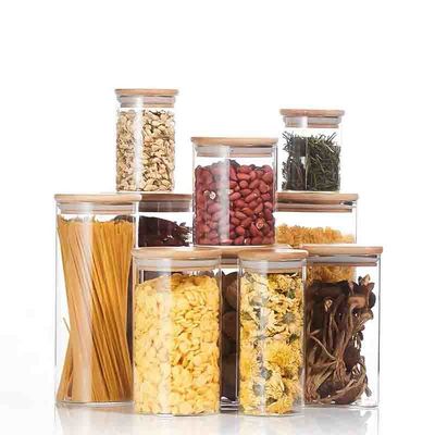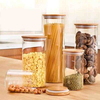El almacenamiento de cristal embotella almacenamiento de cristal apretado de los frutos secos del almacenamiento del tarro del aire con la tapa de bambú