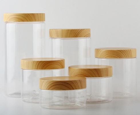 50g, 80g, 100g, 120g, 150g, 200g, tarro del almacenamiento del plástico transparente 250g con los envases cosméticos vacíos del casquillo de bambú recargable de las tapas sacuden