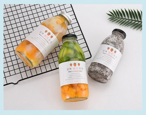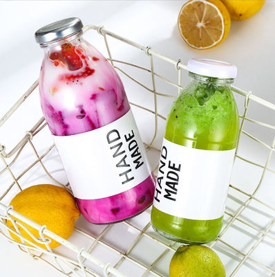 300ml 350ml 500ml alrededor de la botella de la bebida de la forma con la botella de leche de la botella del batido de leche del yogur del vidrio de la etiqueta